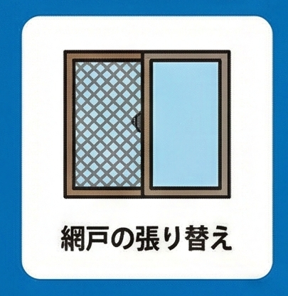 破れたり穴が開いたりした網戸をスピーディーに張り替えます。