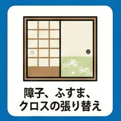お部屋の印象をガラリと変える張り替え作業。破れた障子や汚れたふすま、剥がれかけた壁紙を綺麗に整えます。