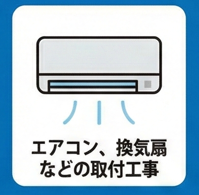 新品エアコンの取り付けや、お引越しに伴う移設工事、キッチンの換気扇交換などを承ります。