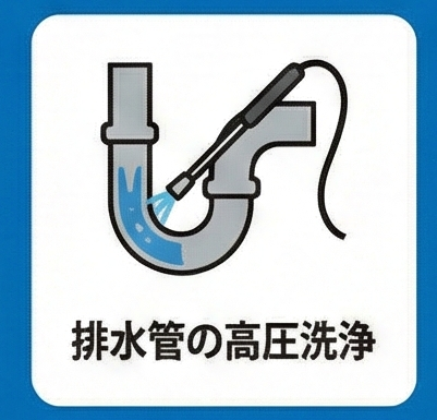 キッチン、浴室、洗面所などの排水管内部を、高圧洗浄機で根こそぎ洗浄します。