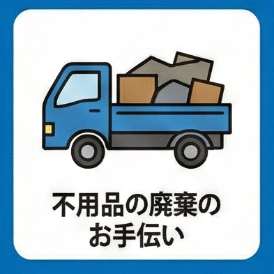 お部屋の片付けで出た不用品の運び出しや処分をお手伝いします。
